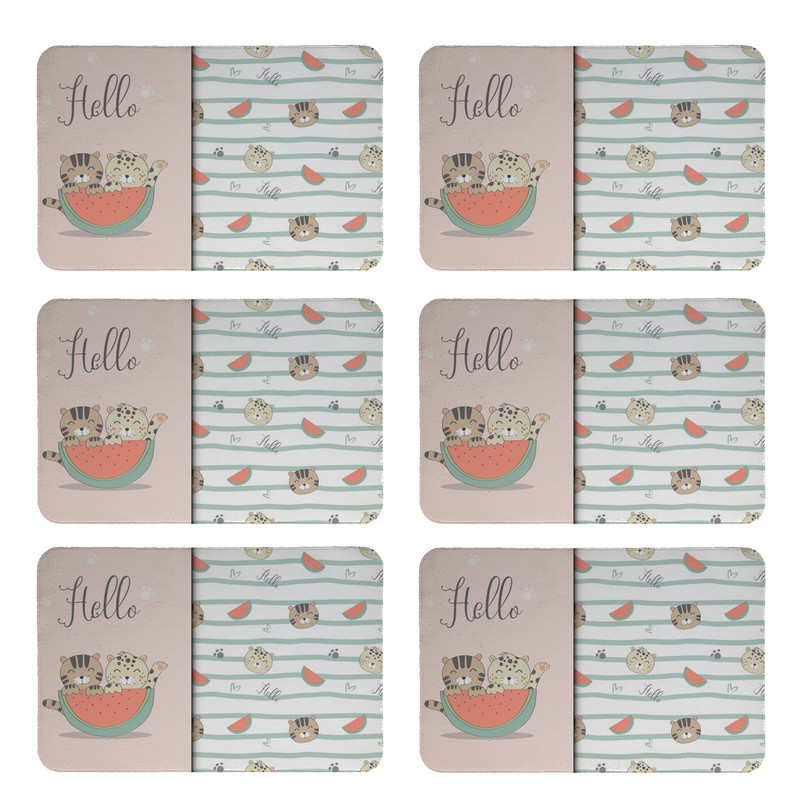 زیربشقابی طرح گربه و هندوانه کد 8029 بسته 6 عددی
